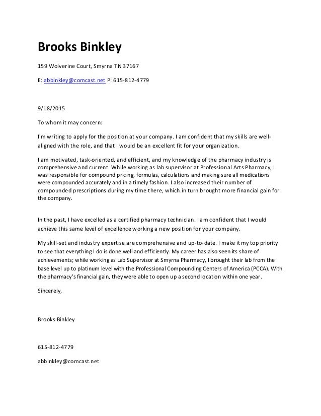 Pharmacists work in a wide range of settings, from supermarkets to hospitals to military units in the field. How long does it takes to become a pharmacy technician?. Here are some of the best cover letter examples, including one submitted to us at hubspot. Pharmacy technicians and pharmacists often work next to each other i. A cover letter serves as a formal introduction to your resume, and allows you to expand on various aspects of your work history.